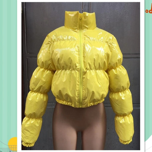 AtxyxtA Puffer Jacket Cropped Parka Bubble Coat Winter Women New Fashion Clothing Black Red Yellow Pink Green Blue Silver