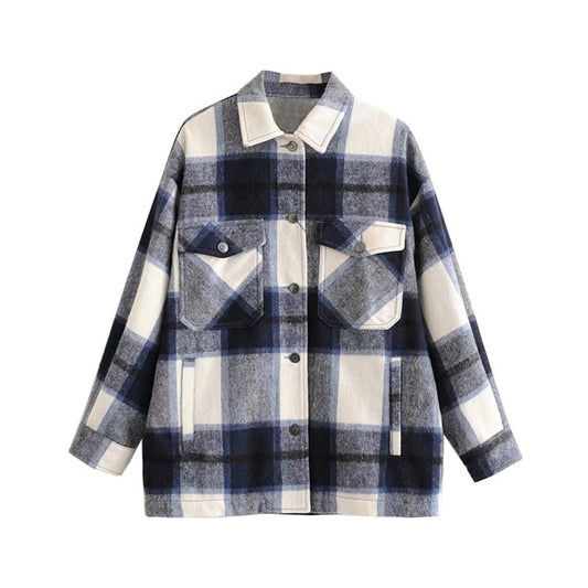 Vintage Stylish Pockets Oversized Plaid Jacket Coat Women 2020 Fashion Lapel Collar Long Sleeve Loose Outerwear Chic Tops