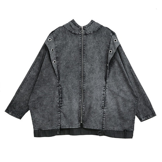 [EAM] Loose Fit Black Denim Split Joint Big Size Jacket New Hooded Long Sleeve Women Coat Fashion Tide Spring 2020 1R641