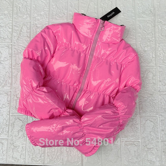 AtxyxtA Puffer Jacket Cropped Parka Bubble Coat Winter Women New Fashion Clothing Black Red Yellow Pink Green Blue Silver